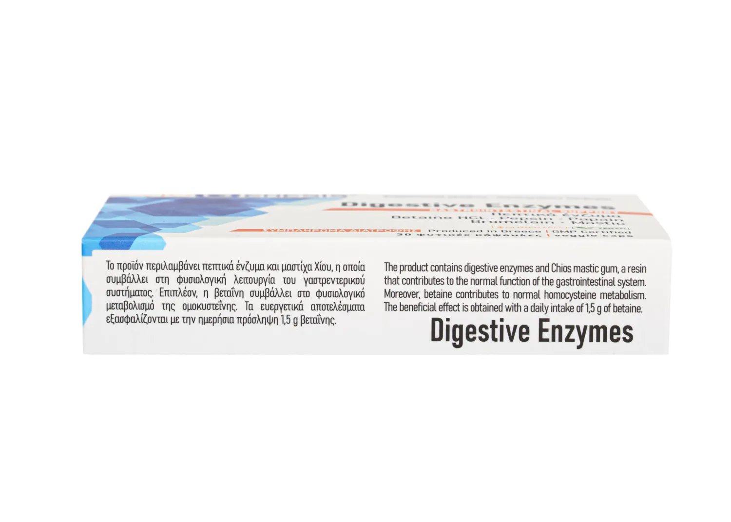 Βασικά συστατικά: υδροχλωρική βεταΐνη, πεψίνη, παπαΐνη, βρωμελαΐνη, μαστίχα Χίου