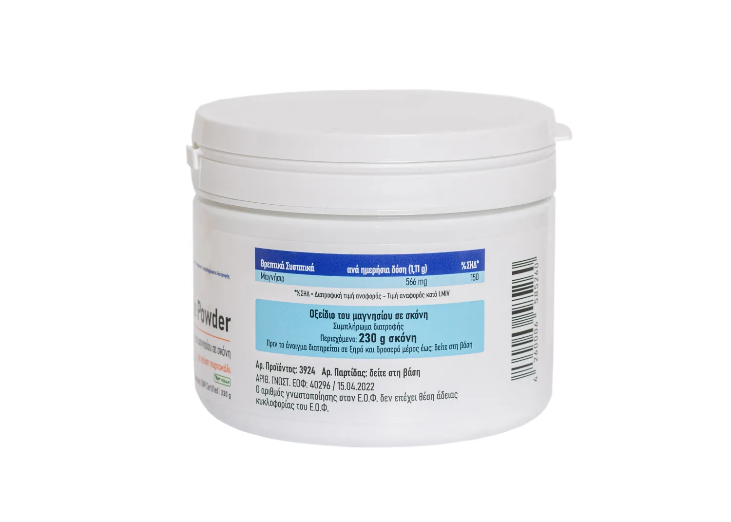 Magnesium Oxide Powder 230γρ, γεύση Πορτοκάλι. Σκόνη μαγνησίου για πεπτική υγεία και ηρεμία.