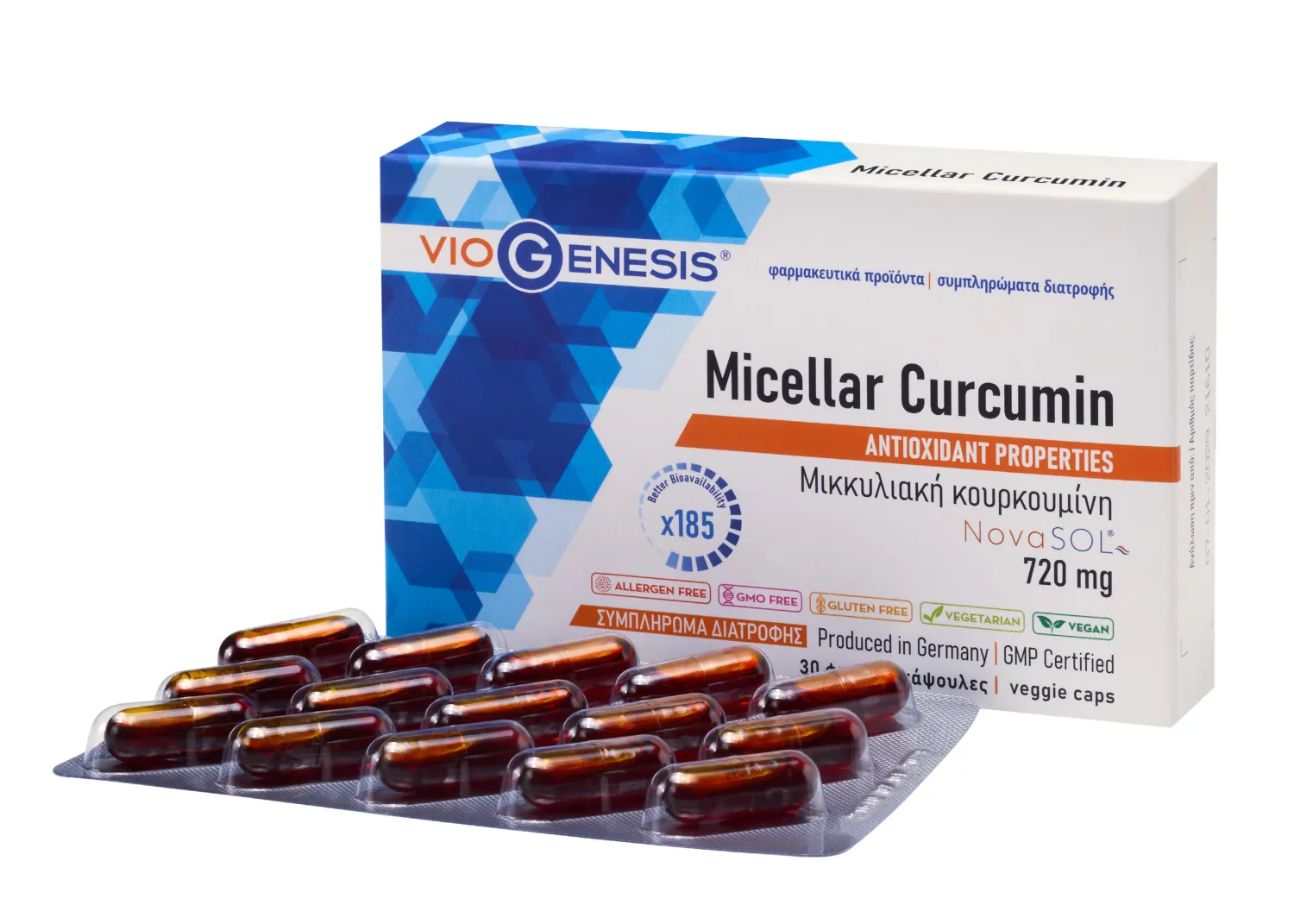 Το Viogenesis Micellar Curcumin αποτελεί ένα συμπλήρωμα διατροφής με μικκυλιακή κουρκουμίνη NovaSOL®.