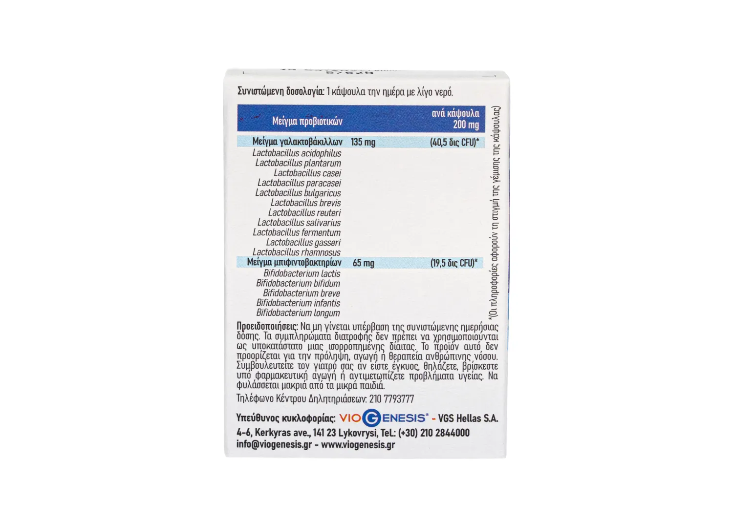 Το VioGenesis ProbioMix 16 περιέχει μείγμα από 16 στελέχη γαλακτοβάκιλλων και μπιφιντοβακτηρίων περιεκτικότητας 60 δις ανά κάψουλα.